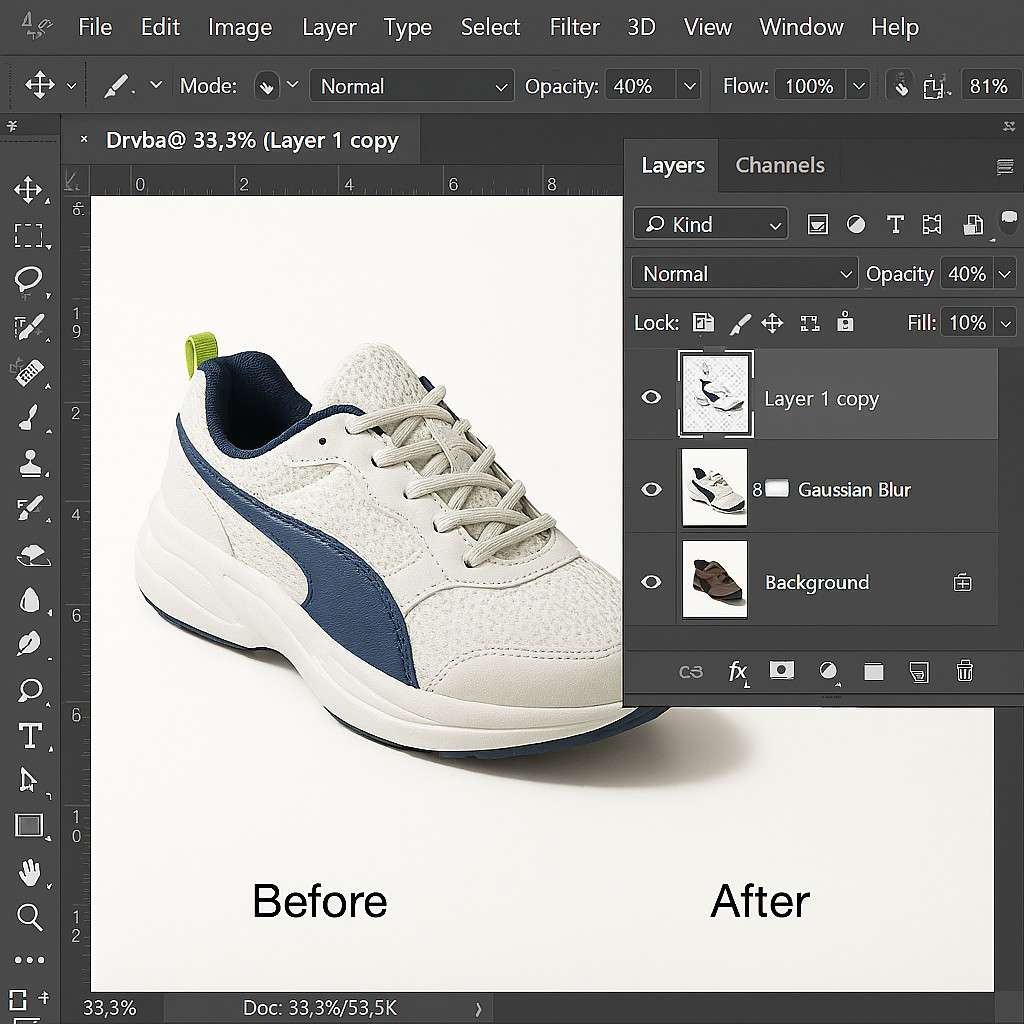 Preparing Shoe Photos Before Adding a Natural Shadow